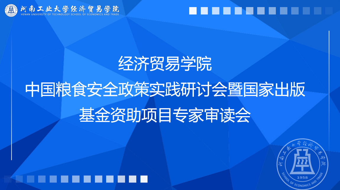 7月6日,由中国农业出版社、河南工业大学主办,河南省特色智库粮食经济研究中心、河南省现代农业产业技术经济评价体系协办的“中国粮食安全政策实践研讨会暨国家出版基金资助项目专家审读会”在我校举行。会议由河南省社会科学界联合会副主席苗树群主持,中国社会科学院武舜臣、中国农业出版社王佳欣和河南省现代农业产业技术经济评价体系赵翠萍等学者参与。