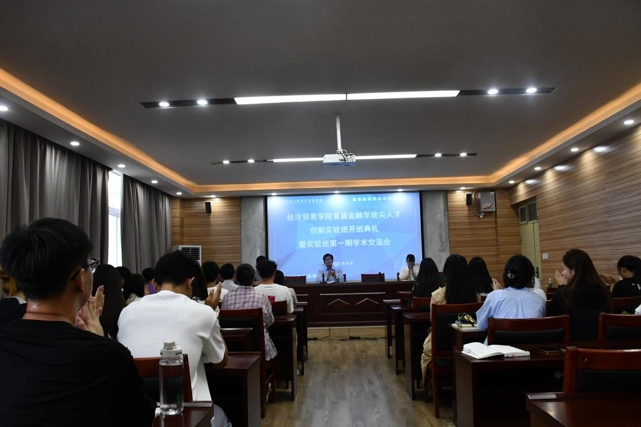 在3605举办了首届金融学拔尖人才创新实验班开班典礼暨实验班第一期学术交流会。副院长朱坤林、团委副书记王秋瑾、金融学系主任奚宾以及学业导师代表和实验班全体学生参加了会议,会议由奚宾主持。