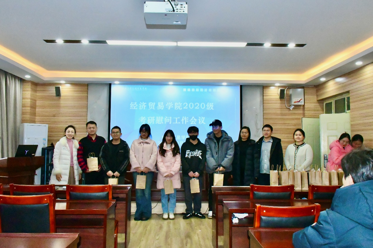 在博识楼3605会议室开展2024届毕业班考研慰问活动。学院党委副书记岳鹏珍、学工部综合科科长(毕业班原辅导员)李振宇、学院全体辅导员和考研学生代表参加此次活动,活动由毕业班辅导员张瑞玲主持。