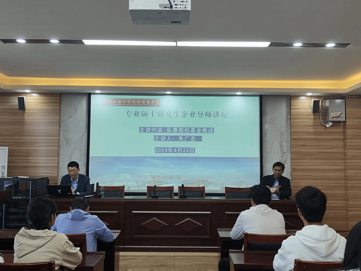 在3605举办“专业硕士研究生企业导师讲坛”,并邀请深圳华蕴投资管理有限公司副总经理朱广圣担任主讲嘉宾。本次论坛由副院长朱坤林主持,部分硕士生导师及2023级全体研究生参加。