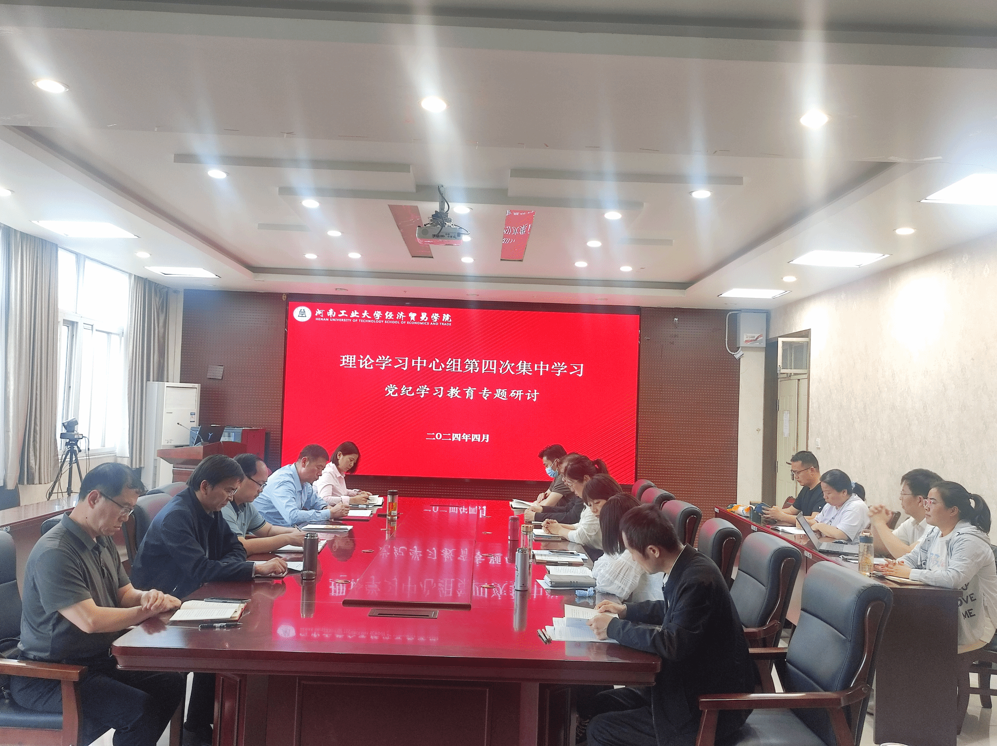 党纪学习教育专题读书班在3501会议室召开理论学习中心组(扩大)第四次集体学习暨党纪学习教育专题学习交流研讨,学院领导班子成员、教师党支部书记和系(科室)负责人参加了学习交流研讨,会议由学院党委书记李刚主持。