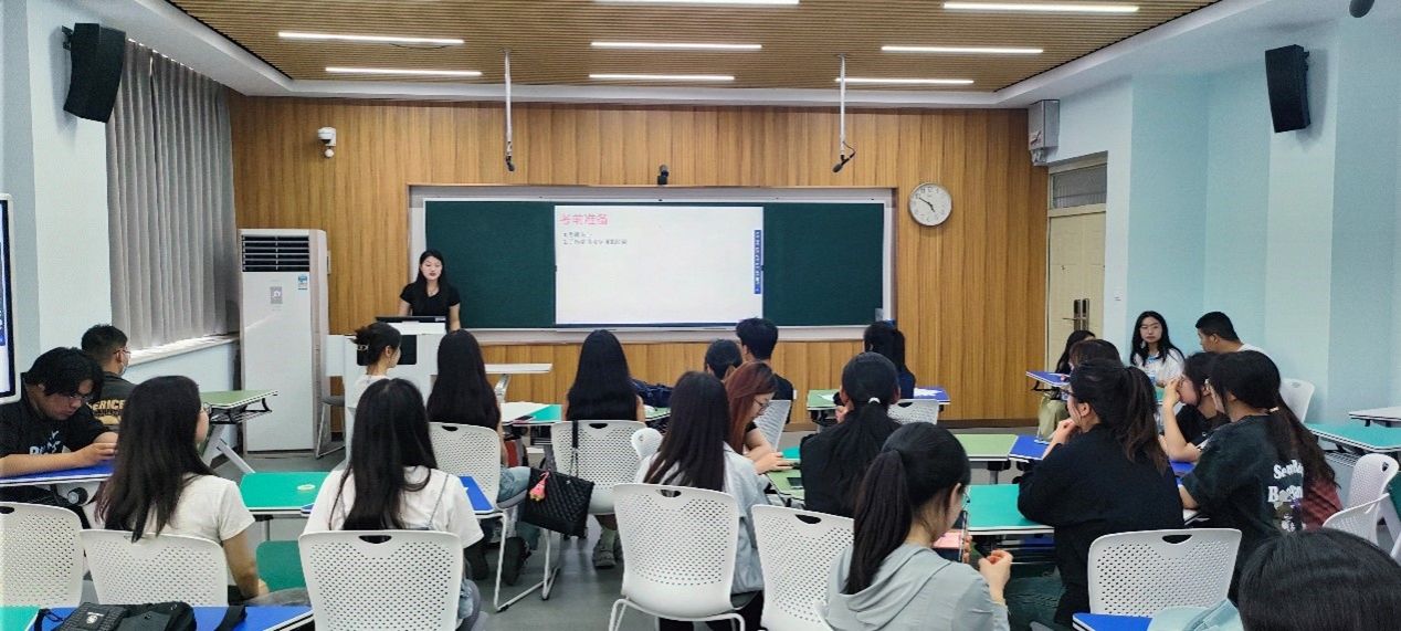 接下来,班会进入经验分享交流环节。首先,保研到南京师范大学的郝文序学姐分享了她的保研经验,从个人介绍、学习经验、保研流程、保研技巧等方面进行了详细介绍,并鼓励同学们:“不要停止,你要相信你的每一份付出一定会在你看不到的地方扎根。”接着,以初试成绩406分考上吉林大学的郭云洋学姐分享了复习及择校经验。随后,王有本学长分享了实习经验以及就业方面的内容。最后,毛劲扬学姐分享了自己的亲身经历,强调了心态在考研和就业过程中的重要性。