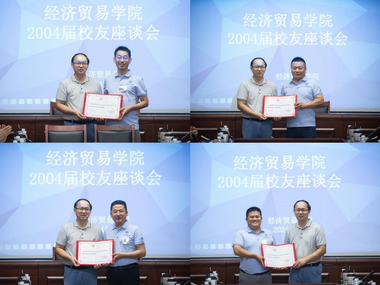 2004届校友开展返校活动,上午在3605会议室举行校友座谈会,经贸学子欢聚一堂,共同追忆青葱岁月,展望美好未来。校党委学工部部长王迪、校友会副秘书长赵强、学院党委书记李刚、院长李文启、河南产业发展研究院执行主任任新平、金融学教师翟书斌、校友代表参加此次座谈会,座谈会由院党委副书记岳鹏珍主持。