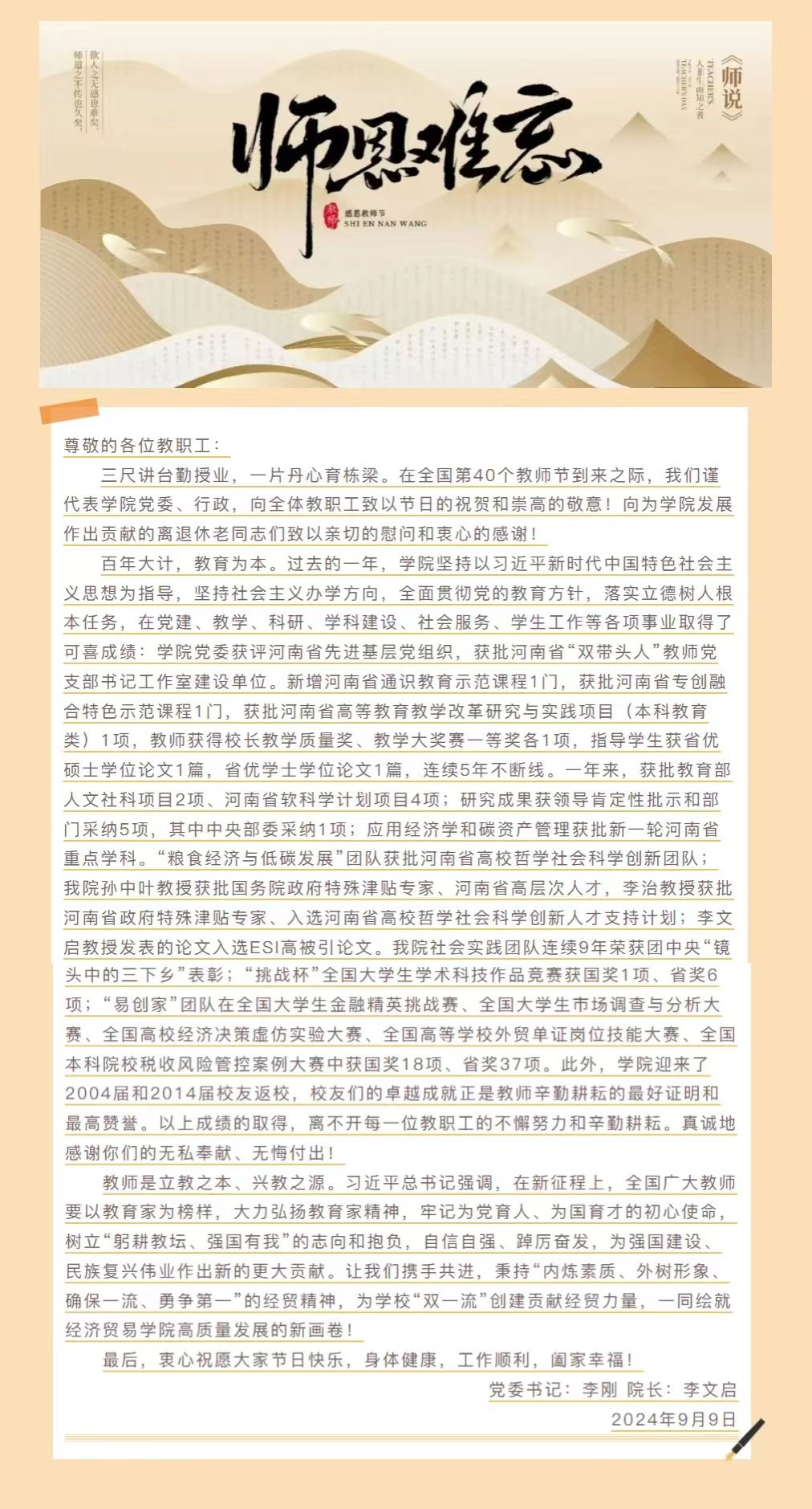2024年教师节慰问信
