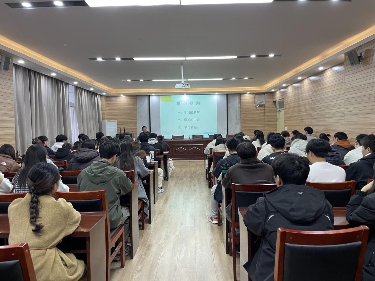 在博识楼3605会议室组织召开专题学习会,学院全体学生党员参会,会议由院党委副书记岳鹏珍主持。
