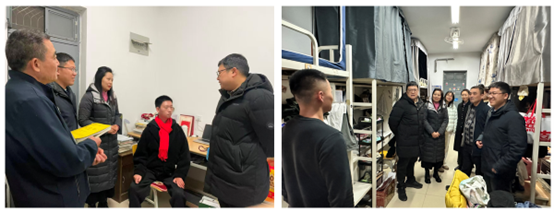 会议后,在高泉书记、岳鹏珍副书记、院关工委常务副主任杨茂的带领下,全体辅导员深入学生宿舍进行走访。详细查看了宿舍卫生、用电安全等情况,与同学们亲切交谈,细致了解学生的期末备考状态、离校行程安排以及假期计划,反复叮嘱同学们要增强安全意识,遵守校规校纪,注意防火防盗防骗,合理安排学习与生活,平安顺利度过期末阶段,并祝愿同学们假期愉快、新年进步。