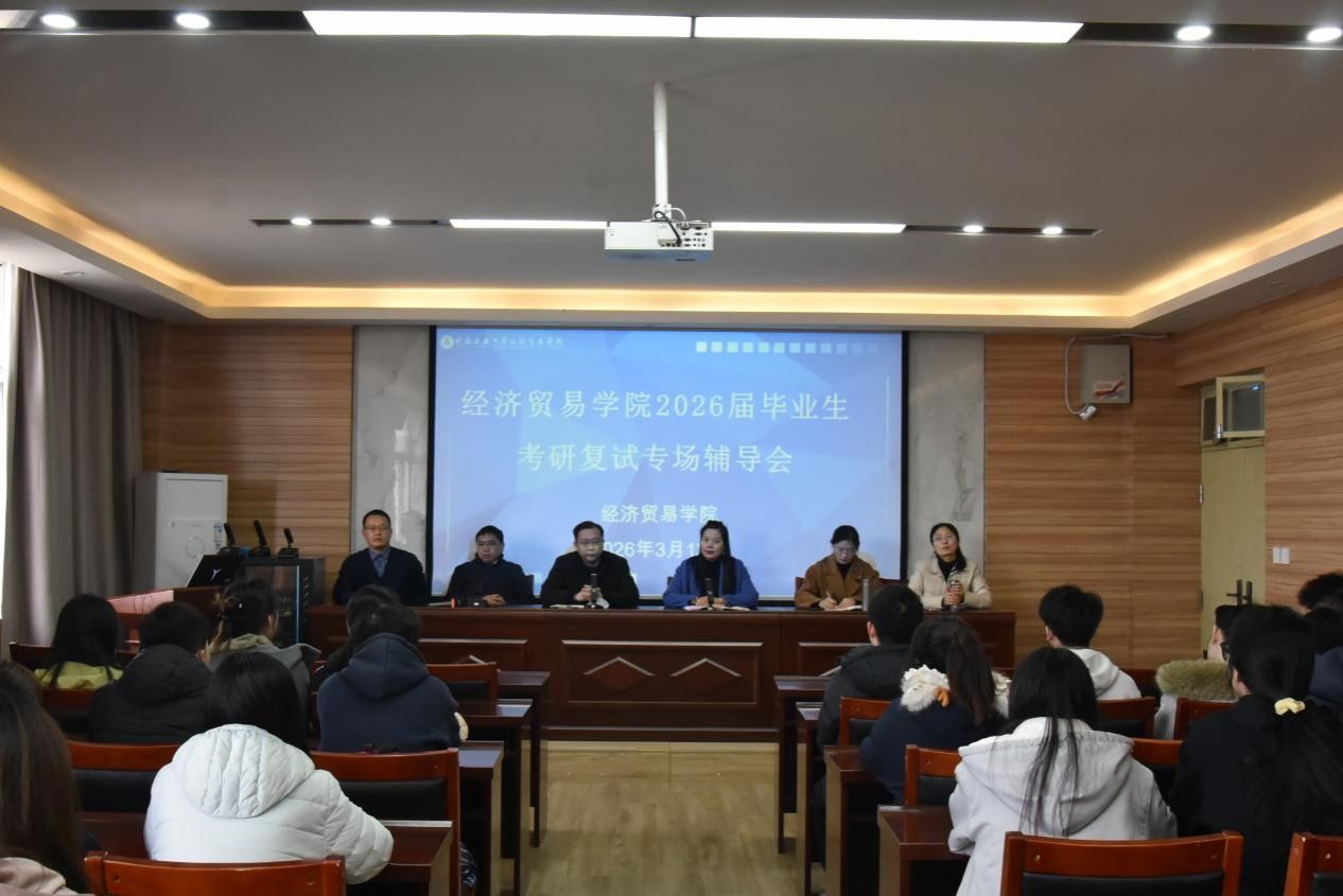 在博识楼3605会议室召开2026届考研复试调剂专场辅导会,学院副院长郭力、各系室主任、毕业班辅导员及2026届考研学生代表参加会议。会议由院党委副书记岳鹏珍主持。