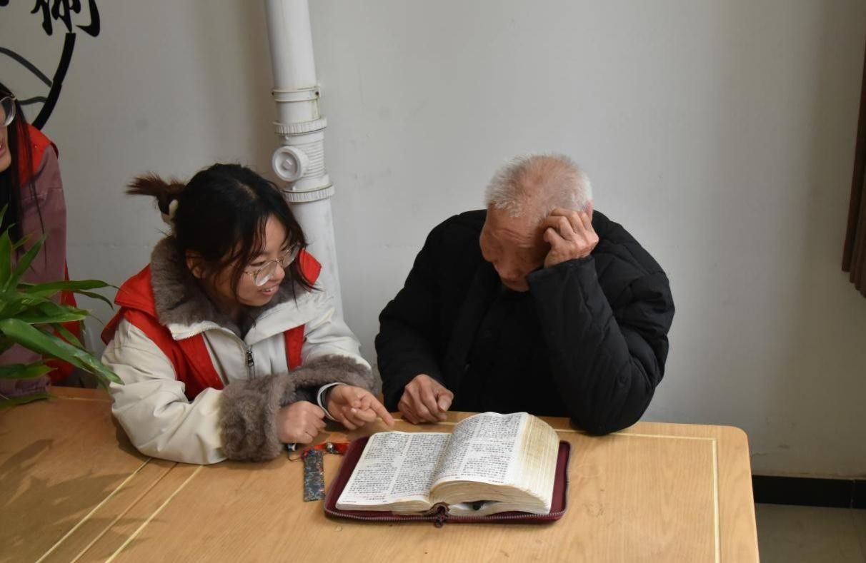 志愿者陪伴社区独居老人阅读
